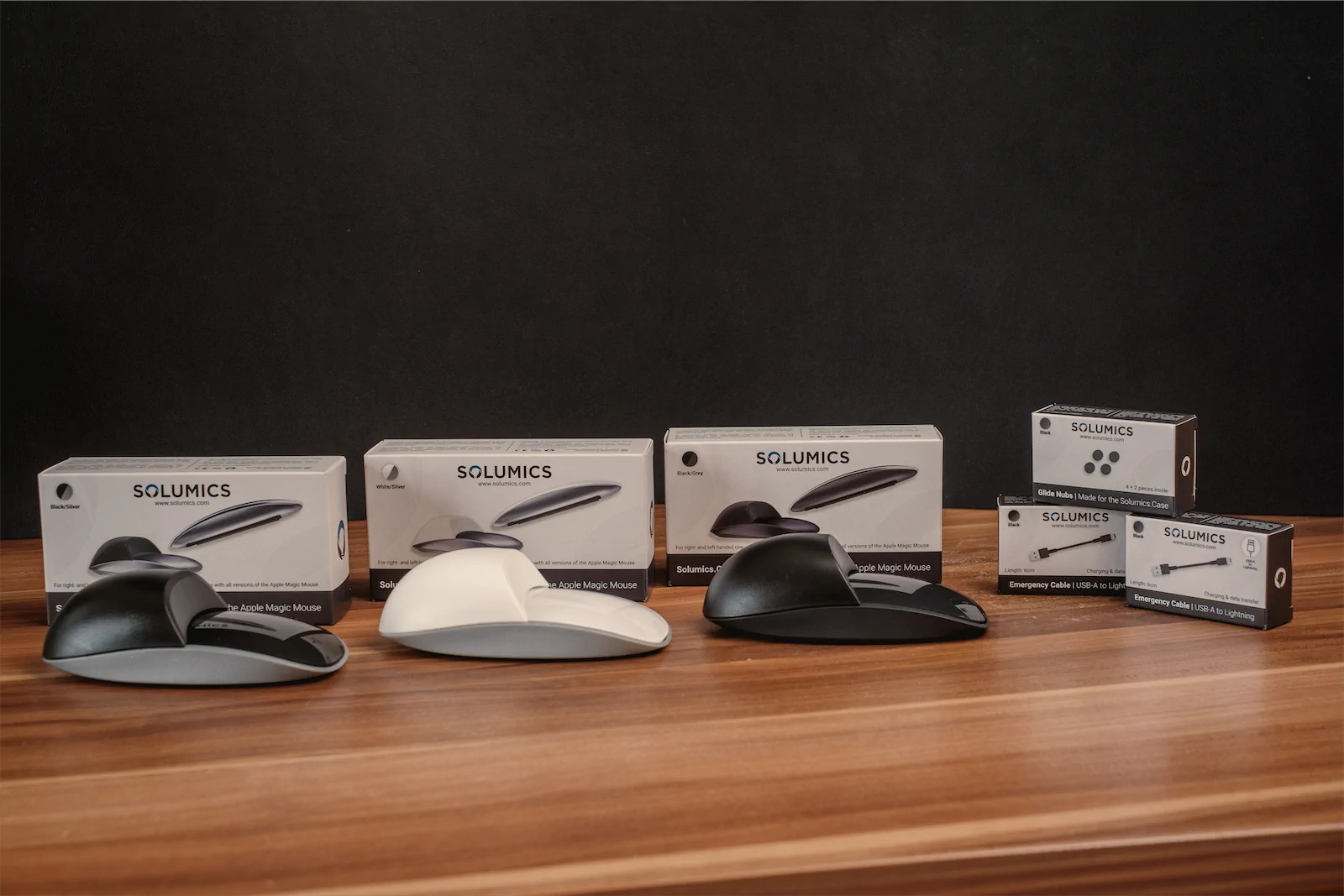 Nuestro objetivo es mejorar la jornada laboral de numerosos usuarios mediante el desarrollo de accesorios que solucionen los problemas de los productos, centrándonos en la usabilidad, el diseño y la háptica. Nuestro primer producto es la Solumics Case, la primera funda ergonómica del mundo para el Magic Mouse de Apple.El Magic Mouse es un gran dispositivo apuntador, pero no es muy cómodo de usar durante largos periodos de tiempo. Por eso diseñamos nuestro primer producto, una funda ergonómica para el Magic Mouse de Apple. Al proporcionar apoyo a la muñeca y la palma de la mano, ayuda a reducir la tensión y el dolor asociados al uso prolongado. Además, la funda también ayuda a mejorar el agarre y la comodidad durante su uso.